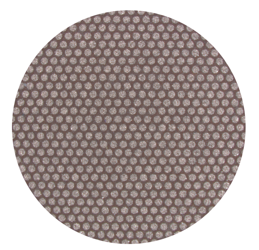 - 이 제품은 다이아몬드 입자를 니켈 도금이나 수지로 결합된 돌출된 패턴이 있는데, 이 패턴은 연삭 속도를 올리고, 냉각효율을 높이며, 연마찌꺼기가 잘 제거될 수 있도록 설계되어 있음. 내구성이 뛰어나고, 탁월한 모서리 유지력과 샘플 평탄도를 제공. 접착식과 마그네틱 시스템을 위한 플렉시블 러버 백킹 제품이 있음