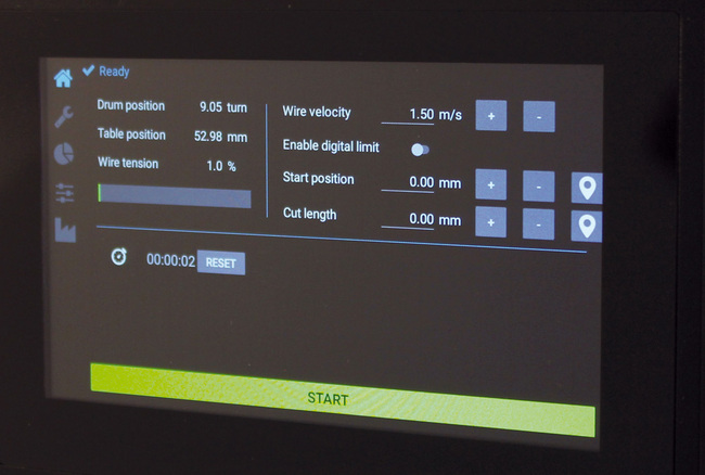 - Wire 장수명을 위해 전자보호장치를 사용하여, 만일 wire에 cutting 압력이 지나치게 높아지면 스크린에 warning이 되며, 따라서 아주 가는 wire도 사용이 가능